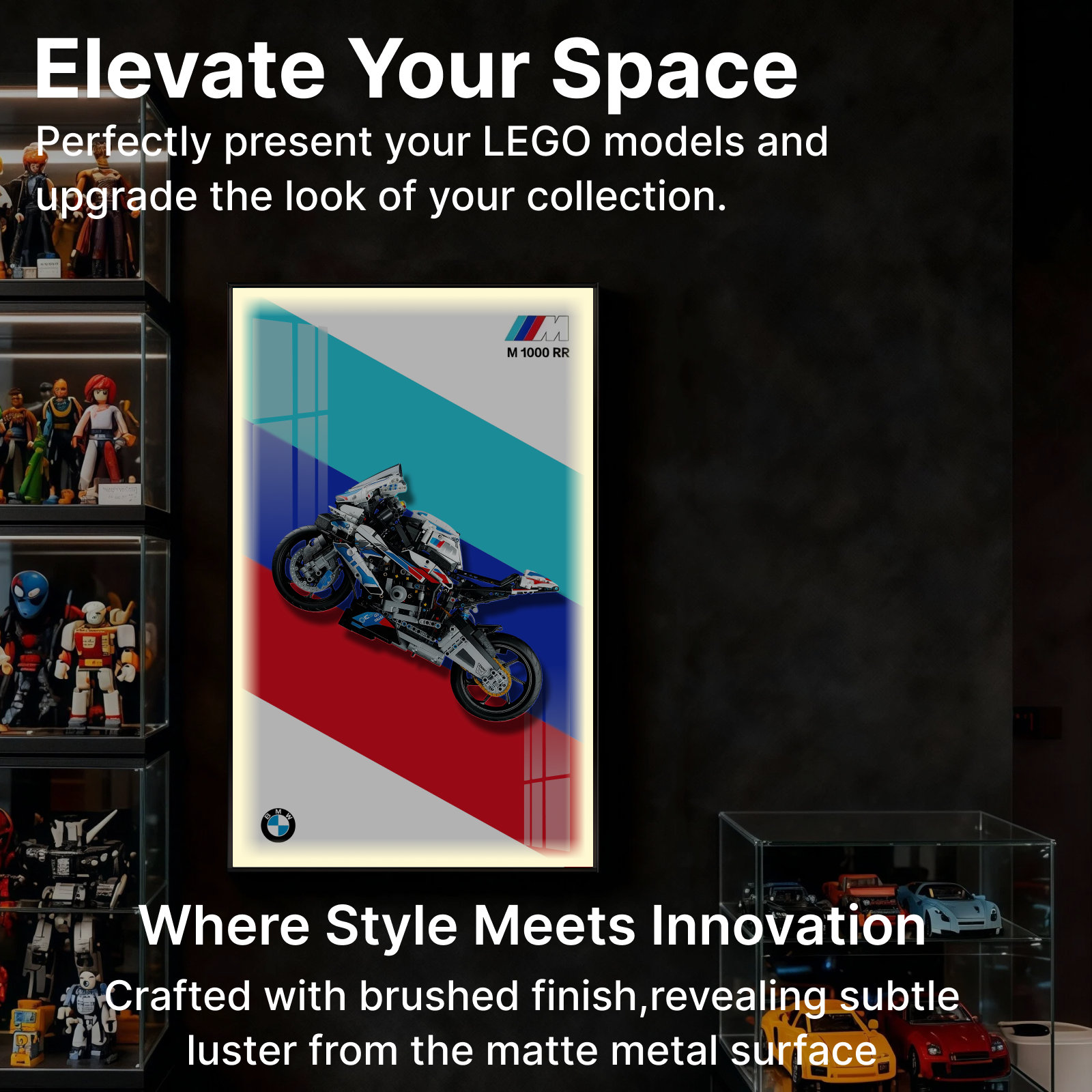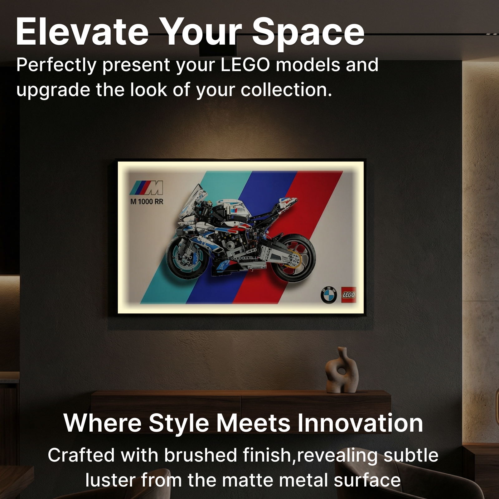 Brushed Aluminum Alloy Frame: Sleek modern design with excellent durability and stability, safeguarding your LEGO display.