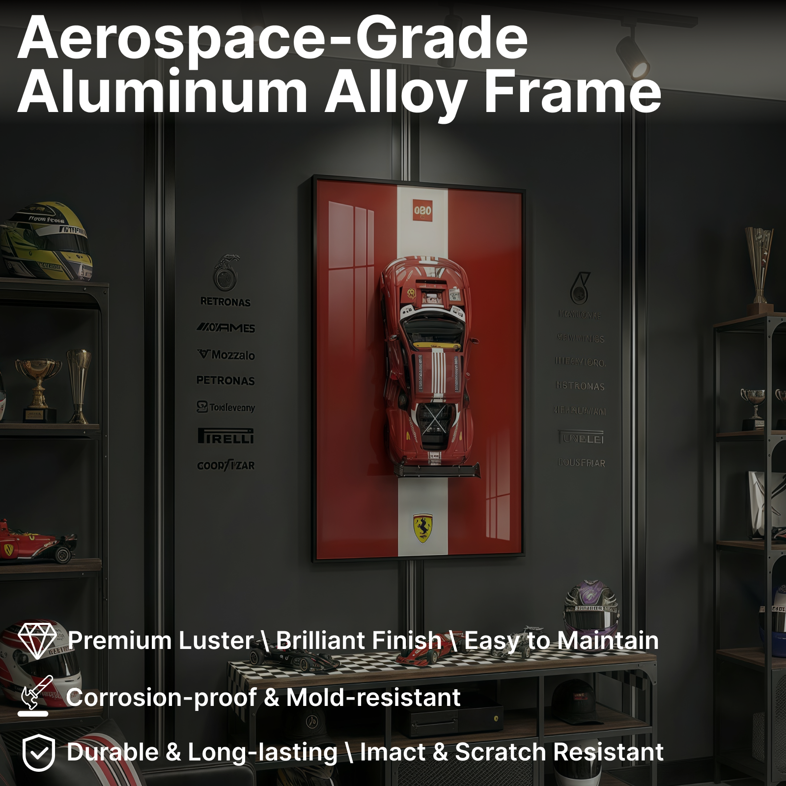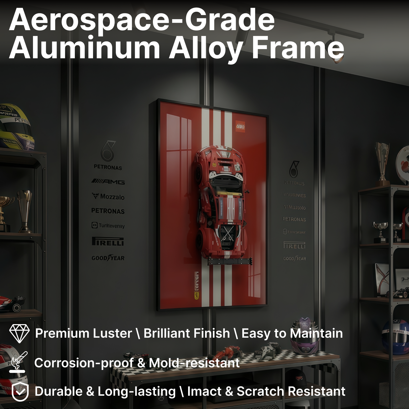 Brushed Aluminum Alloy Frame: Sleek modern design with excellent durability and stability, safeguarding your LEGO display.