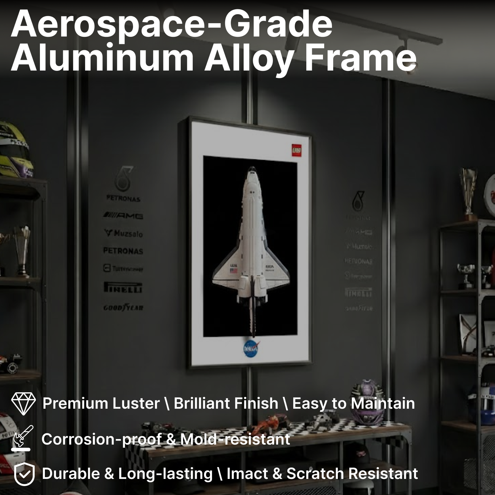Brushed Aluminum Alloy Frame: Sleek modern design with excellent durability and stability, safeguarding your LEGO display.