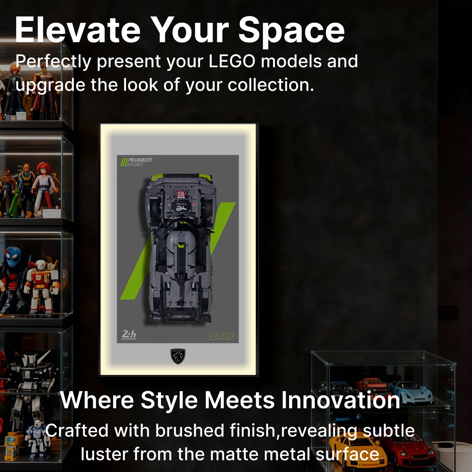 Brushed Aluminum Alloy Frame: Sleek modern design with excellent durability and stability, safeguarding your LEGO display.