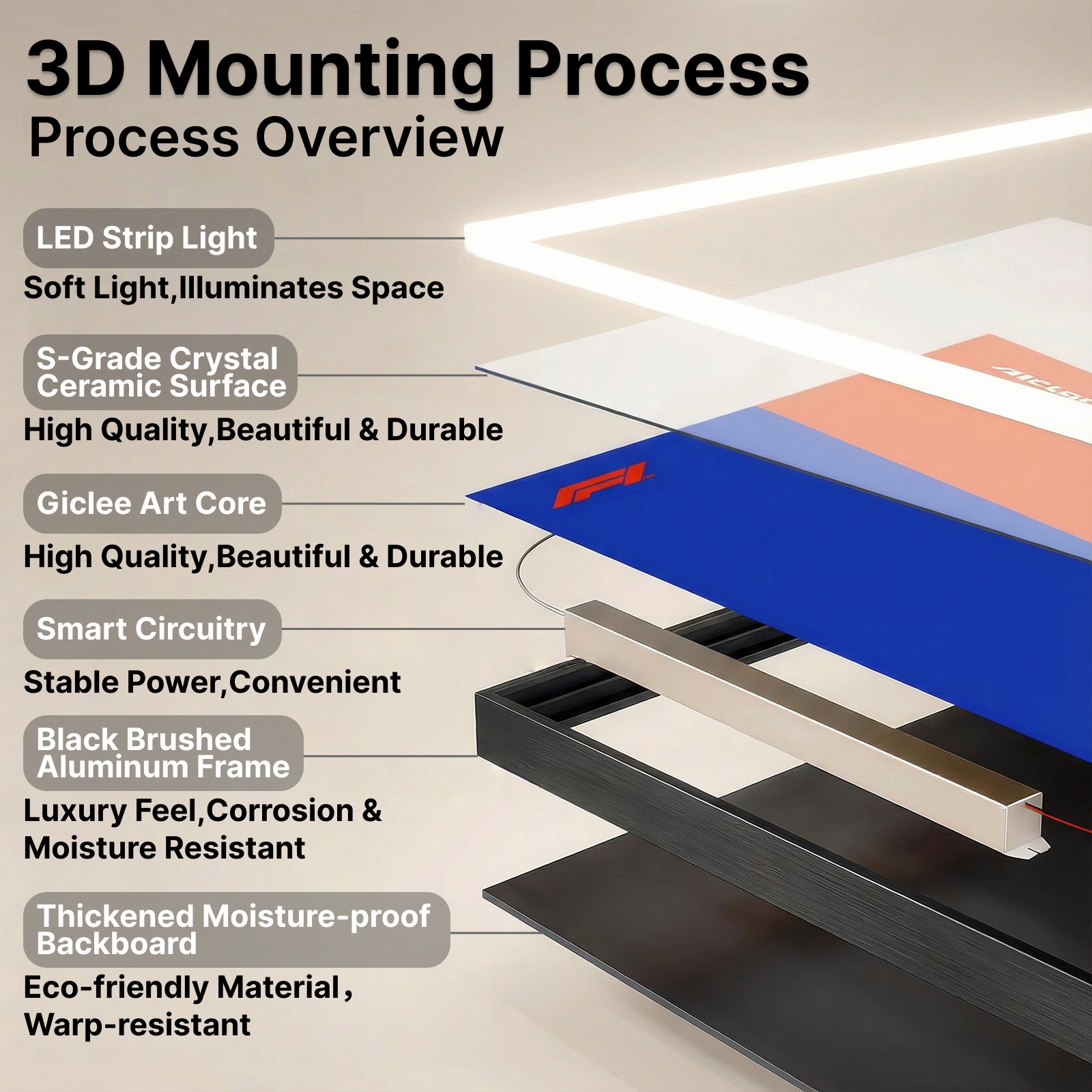 High-Strength Metal Hooks: Secure wall mounting without deformation, supporting the frame and model firmly.