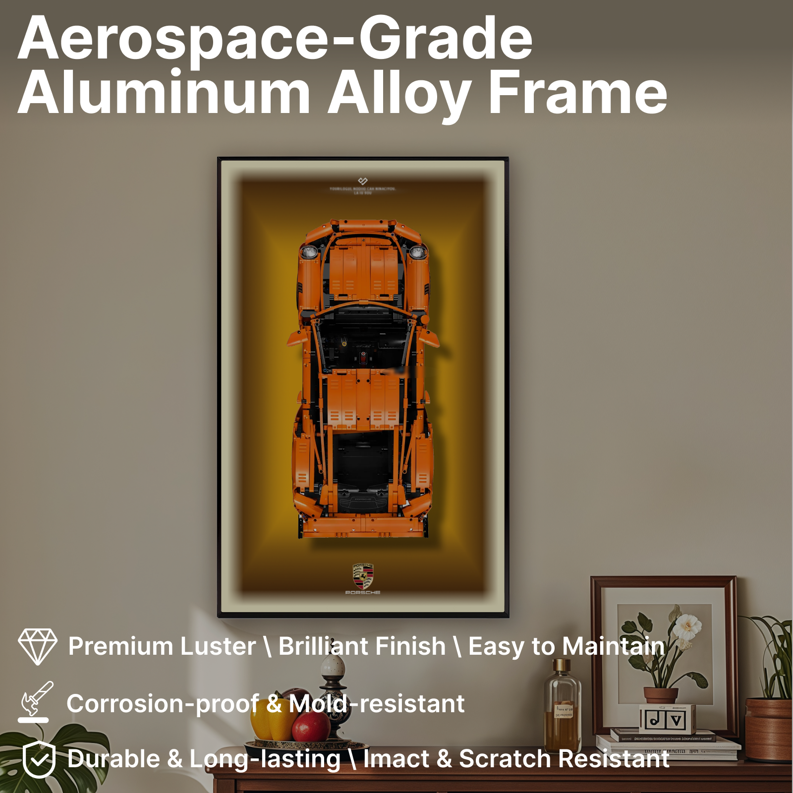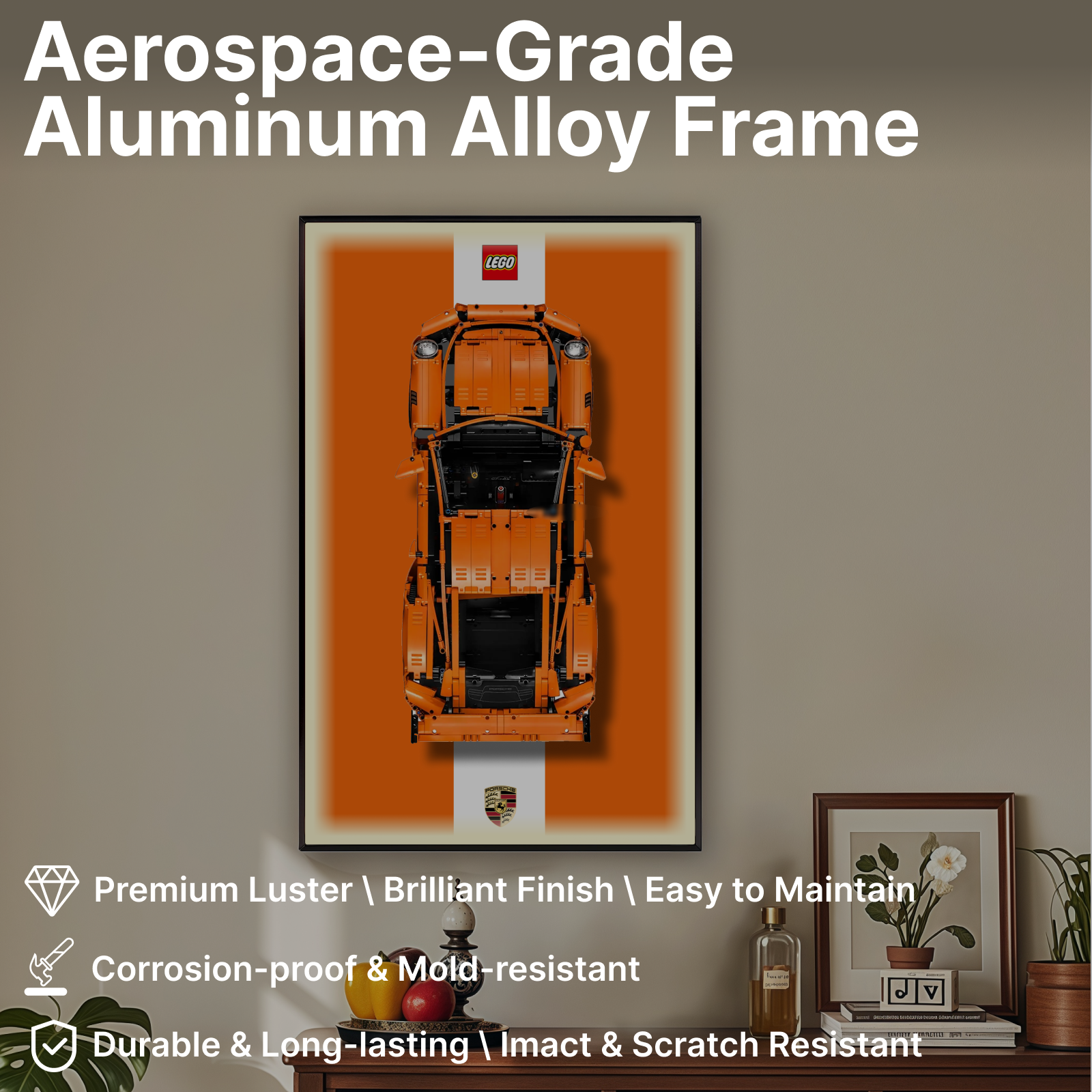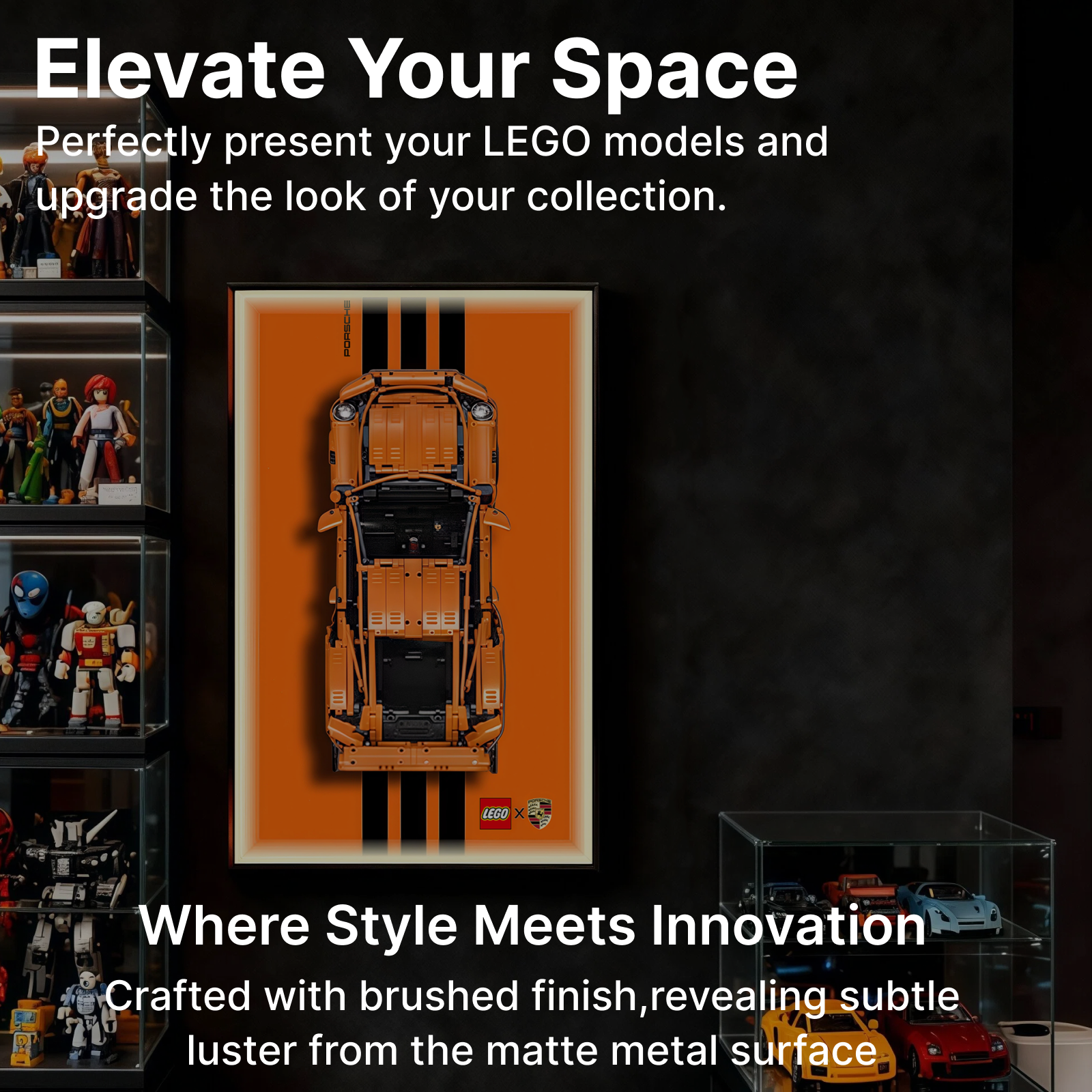 Brushed Aluminum Alloy Frame: Sleek modern design with excellent durability and stability, safeguarding your LEGO display.