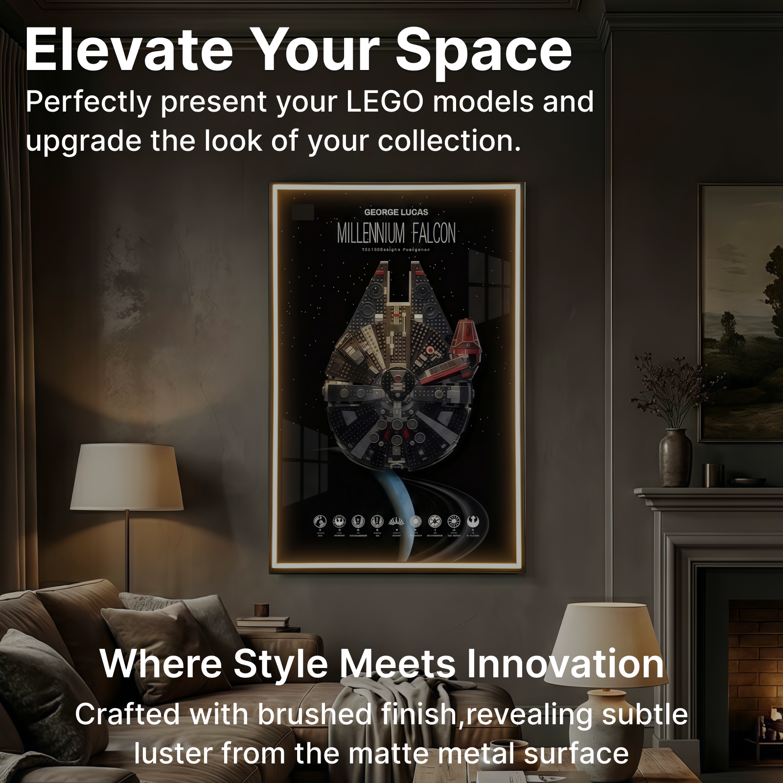 Brushed Aluminum Alloy Frame: Sleek modern design with excellent durability and stability, safeguarding your LEGO display.